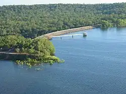 The Darwin River Dam is an embankment-type dam. The dam relies on the annual wet season to be replenished. It is ungated with no spillway regulation possible, and toward the end of the wet season, the dam can overflow. Most years spilling occurs, and is considered normal. Depending on rainfall amounts, this overflow can last from days to weeks.[3]