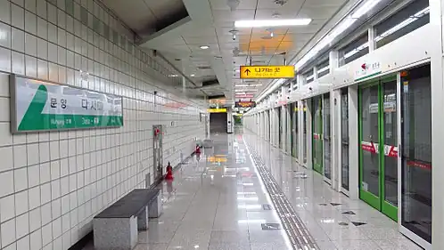 Dasa Station (Korean: 다사역; Hanja: 多斯驛; RR: Dasa-yeok) is a station of the Daegu Subway Line 2 in Maegok-ri, Dasa-eup, Dalseong County, Daegu, South Korea. The area surrounding this station is the downtown of the town Dasa-eup. Platform screen doors have been added to the subway platforms.[1]