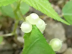 Dasineura investita, the wood nettle gall midge, forms a gall that grows on the wood nettle plant Laportea canadensis. It was described in 2016 and is caused by a midge in the family Cecidomyiidae. The galls form on the petiole, upper leaf, leaf midrib, on leaf veins, between leaf veins, flower, stem. They are oval globose 4-5 mm by 8-12 mm pale, red, white, to green translucent. There are two generations a year, the full grown larva from the autumn generation overwinters in the central chamber of the gall. The genus Dasineura is a vary large one with many gall forming species.[1]