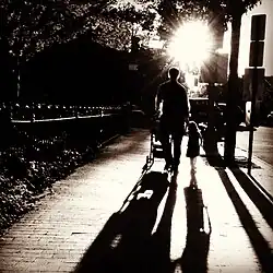 A silhouette of a father and a daughter walking together. The song explores the emotional complexities of fatherhood.