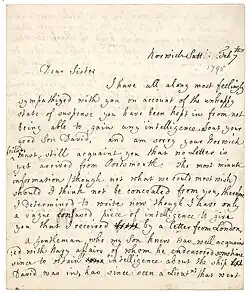 - ^ a b "Margaret Blackburn – Letters (14) received from her brother David Blackburn, 1787–1791". Retrieved 6 December 2013.