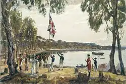 Supply was part of the advance party of ships which arrived in Botany Bay on 18 January.[10] Governor Arthur Phillip's letters to Blackburn are held at the National Library of Australia.[11] Blackburn joined Phillip's expedition in search of a better location for the settlement,[8] and describes Sydney Harbour as "excellent and extensive".[10]