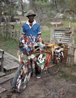 The 1960s brought both social and personal turmoil to Butler's life. Desegregation and the civil rights movement made life in southern Louisiana increasingly difficult for African American communities. In 1962, Butler was forced into retirement on disability due to a head injury that he sustained at the box factory.[1][6][8] In 1968 his wife Elnora died. Coupled with his retirement, this left him feeling "chronically nervous."[6][8] After his retirement, Butler began to adorn his home and yard by turning used tin into flowers for his garden,[7] window coverings (which he called "spirit shields"[8]), and "whirligigs" that moved according to the winds. He was famous for riding, as his only transportation, a bicycle meticulously decorated with found and created objects that spun and moved as the wheels turned. Butler saw his daily five-mile ride as one that enabled him to share his work with others.[7]
