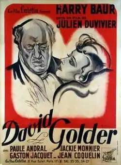 David Golder is a 1931 French drama film directed by Julien Duvivier and starring Harry Baur, Paule Andral and Jackie Monnier. It is an adaptation of Irène Némirovsky's 1929 novel David Golder, about a self-made Jewish businessman.[1][2][3]