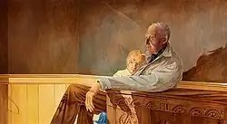 In 1967, Hanna moved with his family to Bristol, Maine. The family first resided in the Pemaquid Point Lighthouse and later in a house in the village of Round Pond.[1] A large body of work between 1968 and 1975 includes paintings and drawings such as Two Different Horizons (1971), Night Watch (1971), and Final Farewell (1975) depicting Captain Alexander Breede (d. 1971), a retired seaman.[2][9]