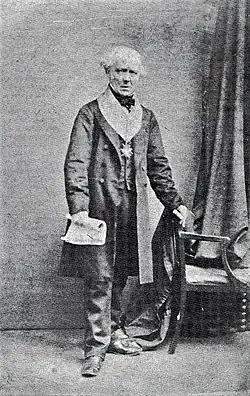 David Hodgson, the son of Charles Hodgson and his wife Nanny Chiswell from North Walsham, was born in Great Yarmouth on 13 June 1798 and baptised at the town's parish church on 18 June.[14][15] His father was a school master and amateur artist, who actively encouraged his son to develop his artistic talents.[14] Few details of David Hodgson's early life are known.[16] In 1805 the seven-year-old boy accompanied his father on a tour of Wales,[17] which included a stay in Chester and may have included a trip to Liverpool to visit relatives.[18] He attended Norwich Grammar School, where he was taught drawing by John Crome and mathematics by his father.[19] Like his father, he was a steady supporter of Crome, even comparing him artistically to Robert Burns.[20]