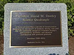 Upon the Dooley's retirement from the University of Rhode Island, the University of Rhode Island Board of Trustees approved naming of the President David M. Dooley Science Quadrangle in his honor.[8]