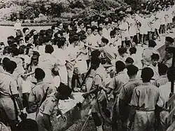 Following this, Marshall was a part of a group of POWs who were against this scheme, and they subsequently founded the War Prisoners' (Singapore) Association (WPA) on 24 April 1946, with Marshall serving as the honorary secretary.[30] The WPA included POWs, internees, political prisoners, and civilian prisoners, with their main goals focusing on the compensation of people affected by the war. As the WPA's secretary, Marshall found himself acting as the main spokesperson for them, and he typically commented critically on the colonial government. The demographic makeup of WPA had a majority of Europeans, which caused Marshall to be accused of working for European interests, although most of the Europeans members were poor and the WPA also focused on affected Chinese, Eurasian, and Indian POWs.[31]