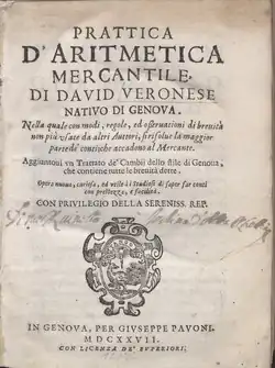 - Veronese, David (1627). Prattica d'aritmetica mercantile (in Italian). In Genoua: Giuseppe Pavoni.