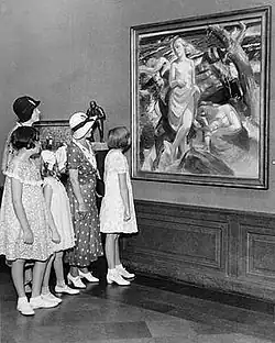 In the 1920s Wallin continued on the path of the free composition in which he strove for a synthesis of color and the play of light. His subject matter was usually nature, mother and child. David Wallin has exhibited in Paris, Vienna, Berlin, Munich, Dresden, Rome, Venice, Copenhagen, Budapest, Reval, Riga, Turku, Helsinki, Buenos Aires and in several U.S. cities, in Stockholm at Liljevalchs, Baltic Exhibition in Malmö in 1914, solo exhibition in "Nordic Art" at Gothenburg Jubilee Exhibition in 1923 and solo exhibition at Konstakademien (Royal Swedish Academy of Arts in Stockholm) in 1926. Göteborgs Konsthall was built as an art exhibition hall for the Jubilee Fair of Gothenburg in 1923, Gothenburg Exhibition (1923).[18] Göteborgs Konsthall later became a part of Gothenburg Museum of Art. The museum building, at Götaplatsen in the center of the city, was created for the international exhibition in Gothenburg 1923 celebrating the city's 300th anniversary. The inaugural exhibition in Göteborgs Konsthall was the Jubilee Exhibition of Nordic contemporary art. The exhibition which took place between May 8 and October 15, 1923, was a muster of the Nordic breakthrough generation of modernism.