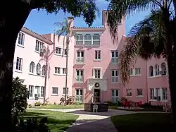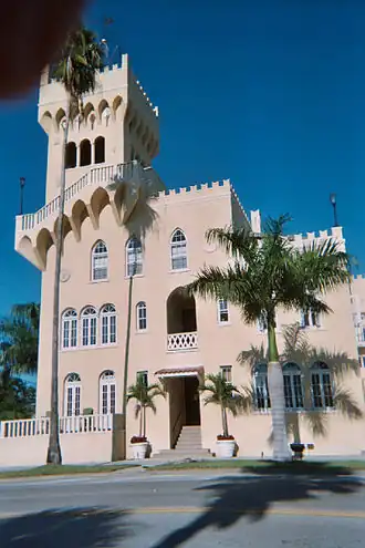 Davis Islands was built upon two man-made islands atop two small natural islands formerly known as "Little Grassy Key" and "Big Grassy Key" at the mouth of the Hillsborough River.[2] The islands were built from mud dredged from the bottom of Tampa Bay in the 1920s and expanded. This dredge-and-fill operation was undertaken at the height of the Florida Land Boom by developer and Tampa native D. P. Davis. Davis then purchased all the dredged land for $350,000. He planned a resort community with three hotels, nine-hole golf course, airport, and swimming pool. D.P. Davis then sold 306 of the original lots for $1,683,582. The development stalled when the Florida land boom of the early 1920s wound down, and Davis was mysteriously lost at sea while making a transatlantic voyage in October 1926.[3]