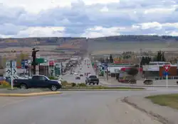 Looking south into downtown Dawson Creek, with the Mile "0" post