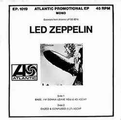 As of 2002, the 1969 promotional EP using "Babe I'm Gonna Leave You" as the A-side track and "Dazed and Confused" as B-side had been one of top ten Led Zeppelin music collectibles.[54] A collector Rick Barrett, dedicated to his Led Zeppelin memorabilia, sold several copies of the promo EP for US$300–500 each, "depending on the condition of the sleeve and of the record itself," said Barrett.[55]