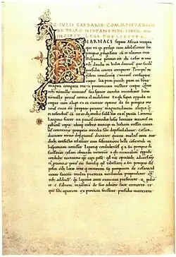 De Bello Hispaniensi (also Bellum Hispaniense; On the Hispanic War; On the Spanish War) is a Latin work continuing Julius Caesar's commentaries, De Bello Gallico and De Bello Civili, and its sequels by two different unknown authors De Bello Alexandrino and De Bello Africo. It details Caesar's campaigns on the Iberian Peninsula, ending with the Battle of Munda.