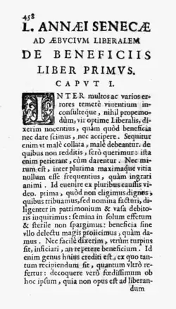 De Beneficiis comprises seven books.[13] The first sentence of the work reads: