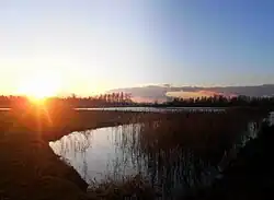 De Biesbosch National Park is one of the largest national parks in the Netherlands[2] and one of the last extensive areas of freshwater tidal wetlands in Northwestern Europe. The Biesbosch ('forest of sedges' or 'rushwoods') consists of a large network of rivers and smaller and larger creeks with islands. The vegetation is mostly willow forests, although wet grasslands and fields of reed are common as well.[3] The Biesbosch is an important wetland area for waterfowl and has a rich flora and fauna. It is especially important for migrating geese.