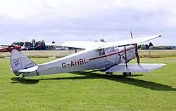 A total of 164 aircraft were produced, of which 84 were placed on the British Register.[1] Over 70 British Hornet Moths were impressed for military service at the start of the Second World War. In early 1940, the RAF used Hornet Moths to carry out unarmed coastal patrols to deter German submarines, while later in the war, many were used as liaison aircraft.[2] South Africa requisitioned 19 Hornet Moths, with the aircraft used for communications duties, while at least three Hornet Moths were impressed into military duties in India.[2]