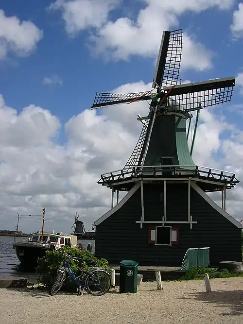 'De Huisman' has been located on the Zaanse Schans since 1955, next to the warehouse 'De Haan'. The mill was probably built in 1786 on the Blauwe Pad ("Blue Path", now "Claude Monet street") in Zaandam. The mill has functioned as a snuff mill (milling tobacco), a mustard mill, and a saw mill.