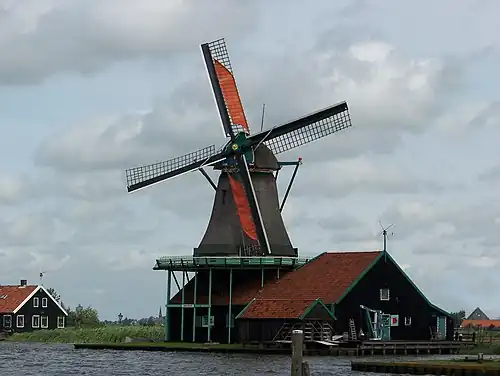 De Kat is the only remaining working windmill in the world which produces paint.[1][2] The mill is in the Zaanse Schans, Zaanstad.[3][4] De Kat is an octagonal smock mill.[5] Robbert Kempenaar has been the head miller of De Kat since 2007.[6]