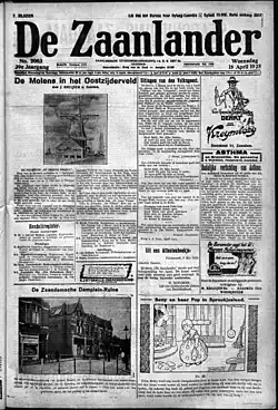 The paper was first published on 13 November 1885[1] as a periodical advertising paper in Wormerveer.[2] In 1926 it absorbed the Zaanlandsch nieuws- en advertentieblad, a weekly for news and advertising.[3] From 16 February 1938 it was published as a daily,[1] and at the time was said to have some 18,000 readers.[2]