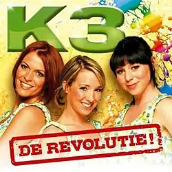 "De Revolutie!" was the last single from Flemish/Dutch girl group K3 with first blonde member Kathleen Aerts. It was written by Miquel Wiels, A. Putte, and P. Gillis, and it was produced by Studio 100. The song premiered in 2008 in their 10th anniversary show. The song was supposed to be the leading single of their tenth album, but the album did not make it because Kathleen wanted to quit K3. However, a year later, when Josje Huisman was chosen to replace Kathleen, the song was rerecorded and put on the tenth album MaMaSé!