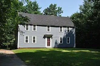 The Deacon Samuel Hill House is a historic First Period house in Billerica, Massachusetts. The 2+12-story timber-frame house is estimated to have been built around 1725, based on analysis of its construction techniques. It was probably built by Deacon Samuel Hill, who inherited the property where it stood from Ralph Hill, an early settler of the area. The house was originally a single room in depth, but a leanto was added in the 18th century, giving it the typical Georgian saltbox appearance. One of the upper chambers has a rare example of wood paneling painted with a marbleized finish. The house was moved to its present location (likely a short distance from its original site) sometime in the 1970s.[2]