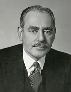 Acheson's advocacy of foreign policy discomfited many traditional American allies, who banded together with India's de facto foreign minister Krishna Menon, in what Acheson named at the time and again in his memoirs as the 'Menon cabal'.[23] Members of the cabal included Anthony Eden and Selwyn Lloyd from Britain; R.G. Casey of Australia; and Lester B. Pearson of Canada, who famously observed in 1951 that "the days of easy and automatic relations with the United States are over'.[24] The Menon cabal would frustrate Acheson's Korean War diplomatic policy, and remained a force beyond Acheson's tenure as Secretary of State,[25][26] while Acheson's vituperative description of the cabal's diplomatic efforts as 'sophistries' by Menon and Pearson personally wounded Pearson, who would go on to become Prime Minister of Canada.[27]