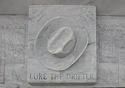 The body was transported to Montgomery on January 2. It was placed in a silver coffin that was first shown at his mother's boarding house at 318 McDounough Street for two days. His funeral took place on January 4 at the Montgomery Auditorium,[23] with his coffin placed on the flower-covered stage.[24] During the ceremony, Ernest Tubb sang "Beyond the Sunset" followed by Roy Acuff with "I Saw the Light" and Red Foley with "Peace in the Valley".[25] An estimated 15,000 to 25,000 people passed by the silver coffin, and the auditorium was filled with 2,750 mourners.[26] During the funeral four women fainted and a fifth was carried out of the auditorium in hysterics after falling at the foot of the casket.[25] His funeral was said to have been far larger than any ever held for any other citizen of Alabama,[27][21] and the largest event ever held in Montgomery,[28] surpassing Jefferson Davis' inauguration as President of the Confederacy.[29] Around two tons of flowers were sent.[30] Williams's remains are interred at the Oakwood Annex in Montgomery.[31]