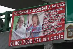Paulette Gebara Farah was a four-year-old disabled Mexican girl who disappeared, and was subsequently found dead under suspicious circumstances. She went missing from her bedroom on March 22, 2010, in the municipality of Huixquilucan de Degollado, Mexico.[4] Upon her disappearance, her family began a search campaign utilizing television, advertisements, and social media.[5]