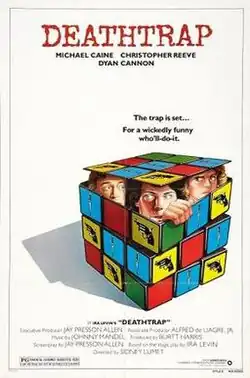 Deathtrap is a 1982 American black comedy suspense film based on the 1978 play of the same name by Ira Levin. It was directed by Sidney Lumet from a screenplay by Levin and Jay Presson Allen, and stars Michael Caine, Christopher Reeve and Dyan Cannon. Critics gave the film mostly favorable reviews while noting its plot similarities to Caine's 1972 film Sleuth.[2][3][4]