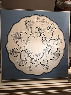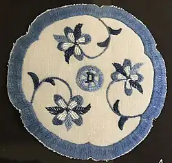 The Deerfield Society of Blue and White Needlework was founded in Deerfield, Massachusetts, in 1896 by Margaret C. Whiting and Ellen Miller. They formed the society in 1896 as a way to help residents boost the town's economy by reviving American needlework from the 1700s.[1] It was inspired by the crewel embroidery of 18th-century women who had lived in the Deerfield, Massachusetts, area. Members of the Blue and White Society initially used the patterns and stitches from these earlier works, but because these new embroideries were not meant to replicate the earlier works, the embroidery soon deviated from the original versions with new patterns and stitches, and even the use of linen, rather than wool, thread.[2]: 73 The society disbanded in 1926 for several reasons. Ellen Miller was in declining health; the trained stitchers were getting old and could not continue; Margaret C. Whiting's sight was fading; and, the design and quality of commercially produced items was increasing.[3]: 35