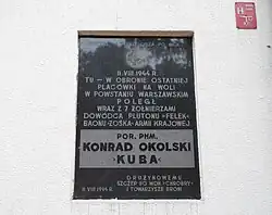 - ^ Utracka, Katarzyna (2009). Powstańcze miejsca pamięci. Wola 1944 (in Polish). Warsaw: Urząd Dzielnicy Wola m.st. Warszawy. pp. 15, 49, 52–54, 65, 76.