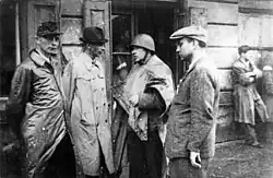 The deployment of the group before the "W" Hour took place under unfavorable circumstances. Due to the Home Army command's decision to shorten the mobilization time to 12 hours, only 40% of the soldiers reached the assembly points on time.[4] The units were not fully armed, as some weapons did not arrive on time or were intercepted by German patrols (e.g., one of the transports of the Zośka Battalion was caught on Chłodna Street).[5] Moreover, even before the "W" Hour, Radosław's soldiers became involved in unplanned skirmishes with the Germans. At 4:10 PM, a German car arrived at the Kamler Factory, where the Home Army Headquarters had already gathered, to collect uniforms stored there. A shootout ensued with the protective platoon of Lieutenant Jerzy Kamler, codenamed Stolarz, which alerted German posts stationed in the nearby Tobacco Monopoly factory. As a result, even before the uprising began, the Home Army Headquarters found itself under siege. Almost simultaneously, a chance firefight occurred with passing German cars near the Telefunken factory on Mirecki Street, where the assembly point of the Broda 53 Diversion Brigade was located. This skirmish turned into a regular fight with the German police relief force, which arrived in 3 cars at Kercelego Square. Eventually, soldiers rushing to the assembly point from various units defeated the Germans and forced them to flee into the ghetto ruins.[a] Only the German armored car participating in the fight managed to break through to Ulrychów.[5]