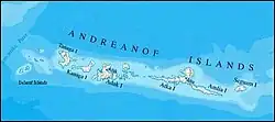 The Delarof Islands (Aleut: Naahmiĝun tanangis;[1] Russian: Острова Деларова) (ca. 51°23′13″N 178°57′47″W / 51.38694°N 178.96306°W) are a group of small islands at the extreme western end of the Andreanof Islands group in the central Aleutian Islands, Alaska. The Delarofs consist of 11 named islands (from West to East): Amatignak, Unalga (Unalĝa), Tanadak (Tanaadax̂), Ulak, Gareloi, Kavalga (Qavalĝa), Ogliuga (Aglaga), Skagul (Sxaĝulax̂), the Tag (Tagachaluĝis), Ugidak (Qagan-tanax̂), and Ilak. The northern- and southern-most named Delarof Islands are Gareloi Island and Amatignak Island respectively.