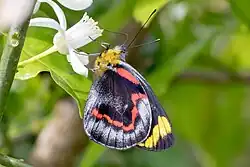 Delias nigrina, the black Jezebel or common Jezebel (also used for Delias eucharis), is a butterfly in the family Pieridae. It is found along the eastern seaboard of Australia, from Queensland, through New South Wales to Victoria.