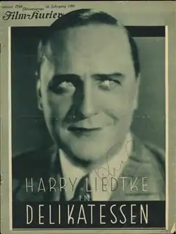 Delicatessen (German: Delikatessen) is a 1930 German romance film directed by Géza von Bolváry and starring Harry Liedtke, Georgia Lind, and Ernő Verebes.[1] It was shot at the Tempelhof Studios in Berlin. The film's sets were designed by the art director Robert Neppach. This was Liedtke's talkie debut.