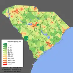 South Carolina's center of population is 2.4 mi (3.9 km) north of the State House in the city of Columbia.[3]