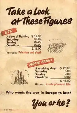Examples from World War I included German forces providing revolutionary literature to Russian prisoners of war that were expected to return through exchange or release, French use of propaganda leaflets to demonstrate how unaffected by war the Kaiser and his family were, technical encouragement and amplification of national dissent, Wilsonian propaganda stressing peaceful settlement terms, British planting of stories attesting to underground German resistance movements and their subsequent oppression by the German government, propaganda deflecting war guilt, propaganda exposing or exaggerating the desired postwar peace terms, and the promotion of the belief that infidelity was rampant among soldiers and their families back home.[2]: 169–173