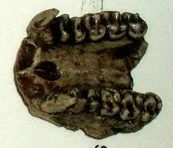 Dendropithecus is an extinct genus of apes native to East Africa between 20 and 15 million years ago. Dendropithecus was originally suggested to be related to modern gibbons, based primarily on similarities in size, dentition, and skeletal adaptations.[1] However, further studies have shown that Dendropithecus lacks derived hominoid traits. Instead, the traits shared between this taxon and modern primates are primitive for all catarrhines. Dendropithecus is now considered to be a stem catarrhine, too primitive to be closely related to any modern primates.[2]