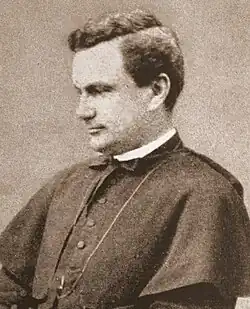 As a young man, O'Connell felt called to be a priest and entered St. Charles College in Ellicott City, Maryland, in 1868.[2] In part due to the influence of his uncles, in 1871 he was sent to Rome to study at the Pontifical North American College.[1] "So brilliant was the young man that at his examination for the degree of Doctor of Divinity the cardinal prefect and examining professors accorded it to him by acclamation instead of by the usual method of balloting."[3]