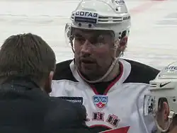 Denis Kulyash (Russian: Денис Куляш), born on 31 May 1983 in Omsk (Russian Federation) is a professional ice hockey defenceman who is currently playing for the HSC Csíkszereda of the Erste Liga. On 6 November 2020 the Romanian Government offered him Romanian citizenship.[1] Kulyash has been a long-time member of Russia's national ice hockey team known for his extremely hard slap shot, which gained him a nickname "Tsar Cannon" (Russian: Царь-пушка). Kulyash currently holds the record for the fastest ice hockey shot with a speed of 110.3 miles per hour (177.5 km/h) previously held by Boston Bruins defenceman Zdeno Chara.[2][3]