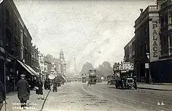 The area and road is said to have acquired its name from Queen Anne's husband, Prince George of Denmark, who hunted there.[2] High Street, Camberwell was renamed Denmark Hill as part of metropolitan street renaming.[3]