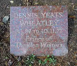 Two weeks before his death in November 1977, Wheatley received conditional absolution from his old friend Cyril 'Bobby' Eastaugh, the Bishop of Peterborough. He was cremated at Tooting and his ashes interred at the South Cemetery section of Brookwood Cemetery, under a tall tree near the entrance. He is also commemorated on the Baker/Yates family monument at West Norwood Cemetery.