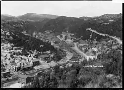 There were three main townships on the Denniston Plateau – Denniston, Burnett's Face, and Coalbrookdale.[27][28] There were no roads connecting the townships, and everyone walked alongside the roperoads to move about.[29] The population of the plateau as a whole peaked in 1911, at just over 1,400 inhabitants[2] (the population of Denniston township peaked later, in 1926).