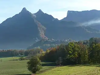 From left to right: Dent de Broc, Dent du Chamois and Dent du Bourgo | |