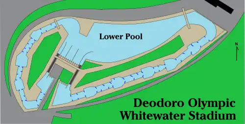 The Deodoro Olympic Whitewater Stadium is a whitewater paddling venue, constructed to host the canoeing and kayaking slalom events for the 2016 Summer Olympics in Rio de Janeiro. The stadium is part of the 'X-Park' sport complex (which includes BMX and Mountain Bike) located in Deodoro, Rio de Janeiro, Brazil.