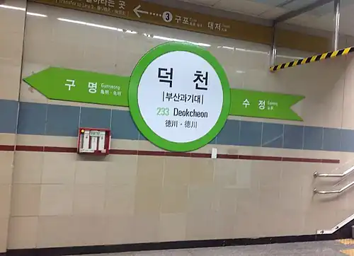- ^ Sang-Joon, Oh (December 21, 2010). 덕천역(도시철도 2·3호선), 부산 최고 상권 깜짝부상. The Kookje Daily News (in Korean). Retrieved June 3, 2024.