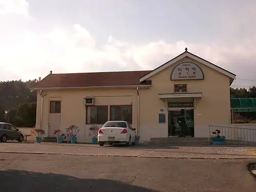Deokha Station (Korean: 덕하역; Hanja: 德下驛) is a railway station of the Donghae Line in Cheongnyang-eup Ulju County, Ulsan, South Korea.