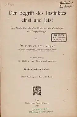 - ^ a b c d e f g Ziegler, Heinrich Ernst (1920). Der Begriff des Instinktes einst und jetzt. Jena: Verlag von Gustav Fischer.