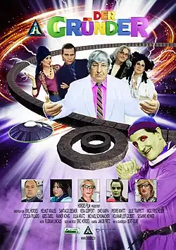 Der Gründer (The Founder) is a 2012 German satirical trash comedy film and the directorial debut of Eric Hordes. The work had its premiere on 21 December 2012 as a “doomsday premiere” in Berlin’s Kino Babylon.[1] The film was released by Turbine Media Group on DVD and on streaming on Amazon Prime Video.[2][3] The film parodies the story of Thomas G. Hornauer, creator of Kanal Telemedial, who creates a sect with the help of an alien.